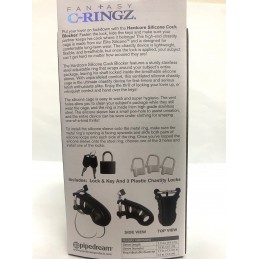 Put your lover on lockdown with the Hardcore Silicone Cock Blocker! Fasten the lock, hide the key, and make sure your partner keeps his cock where it belongs! This high-end chastity cage is made from our body-safe, phthalate-free Elite Silicone and is designed for comfortable long-term wear. The chastity device is lightweight, flexible, and breathable, but once the lock is applied, your subject can’t get hard no matter how aroused they are! The Hardcore Silicone Cock Blocker features a sturdy stainless steel adjustable ring that wraps around your subject’s entire package, leaving his shaft locked inside the breathable silicone sleeve. With unparalleled comfort, this ventilated silicone chastity cage is the ultimate chastity device for first-timers and serious fetish enthusiasts alike. Enjoy the thrill of locking your lover up, or relinquish control and hand over the keys! The silicone cage is easy to wash, body-safe, and super hygienic. The vent holes allow you to clean your subject’s package while they still wear the cage, and the ring is made from high-grade stainless steel. The silicone sleeve has a small pee-hole to assist urination, and the entire device can be worn under clothing for amazing one-of-a-kind thrills! To install the silicone sleeve onto the metal ring, make sure the metal ring’s opening is facing upwards and slide both pairs of silicone loops onto each side of the ring. Once you’ve looped the silicone sleeve onto the steel ring, choose one of the 3 holes and install one of the locks.